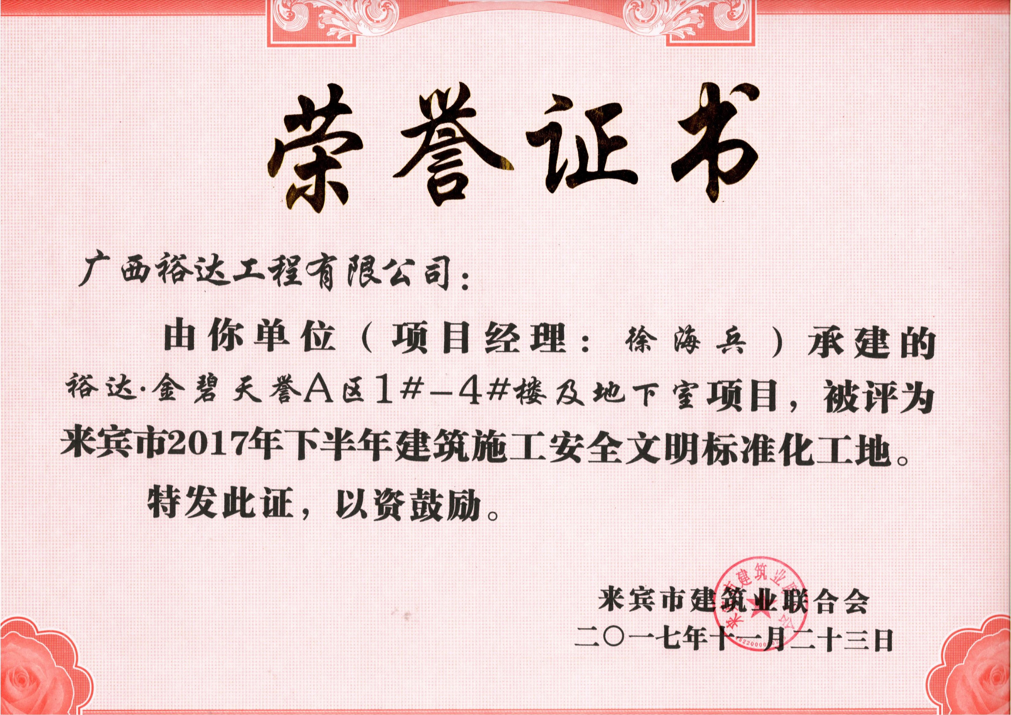 九游·体育(jiuyou.com)官方网站再添来宾市“安全文明标准化工地”