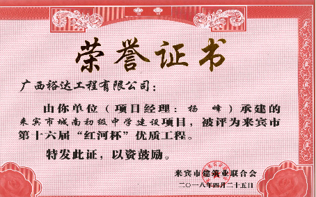 工程公司!再添5项来宾市“红河杯”优质工程!