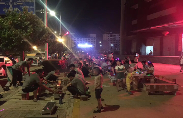 跑步结束后,紧接着烧烤活动正式开始,随着音乐响起,场面十分热闹,一片欢声笑语的。员工们把烧烤桌拼在一起,有的在品者美味的烧烤,有的在玩游戏,有的在开心的交谈着,场面温暖而热烈。
