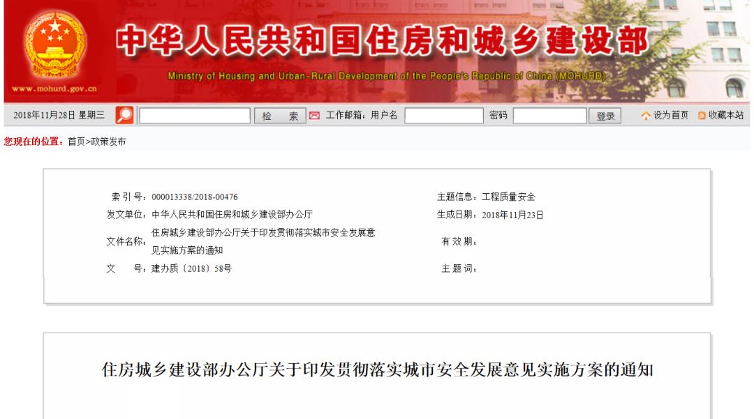 2.制定完善安全标准。完善城市高层建筑、大型综合体、综合交通枢纽、隧道桥梁、管线管廊、轨道交通、燃气工程、排水防涝、垃圾填埋场、渣土受纳场等城市基础设施技术标准,提高安全和应急设施标准要求,增强抵御事故风险、保障安全运行能力。