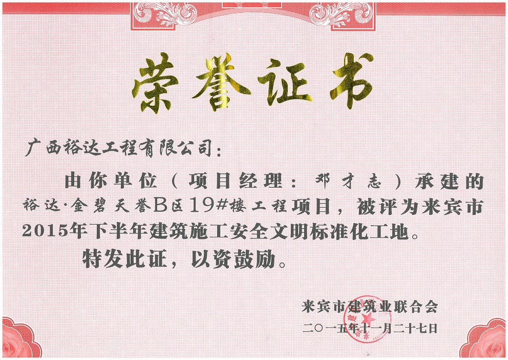 2015年下半年建筑施工安全文明标准化工地(金碧天誉B区20#楼)