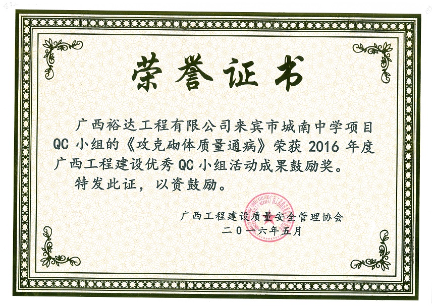 上一篇:2016年度广西工程建设优秀QC小组活动成果鼓励奖《混凝土后浇带裂缝控制技术攻关》-黄丽娜QC小组
