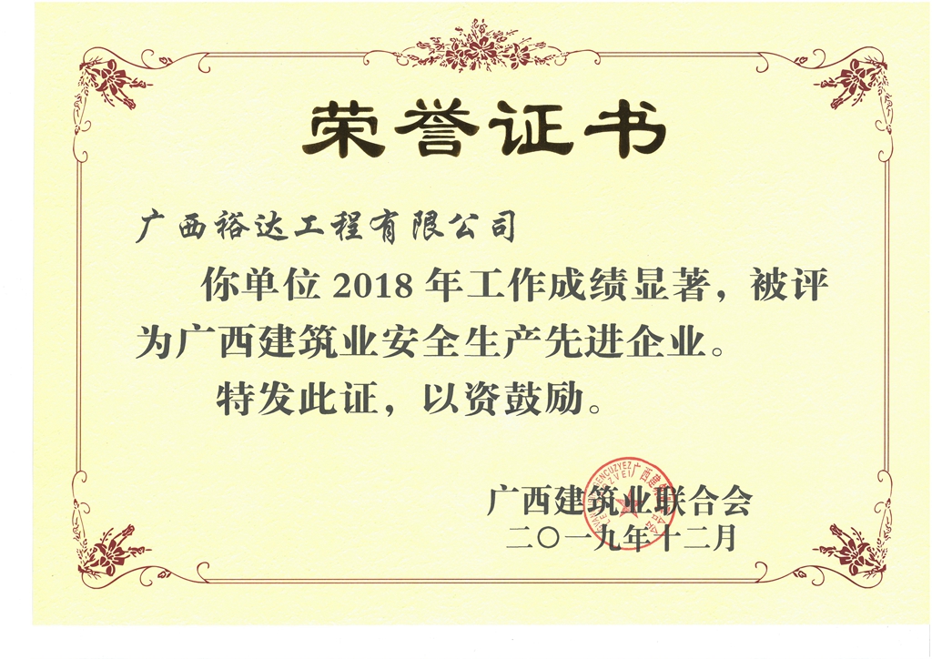 2018年广西建筑业安全生产先进企业